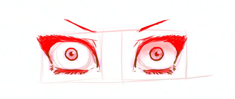 Using the rectangle as a base, sketch in the eyelids. These can be angled, curved, or arched depending on the expression you want to create.